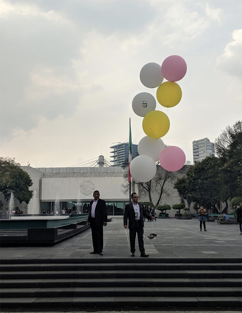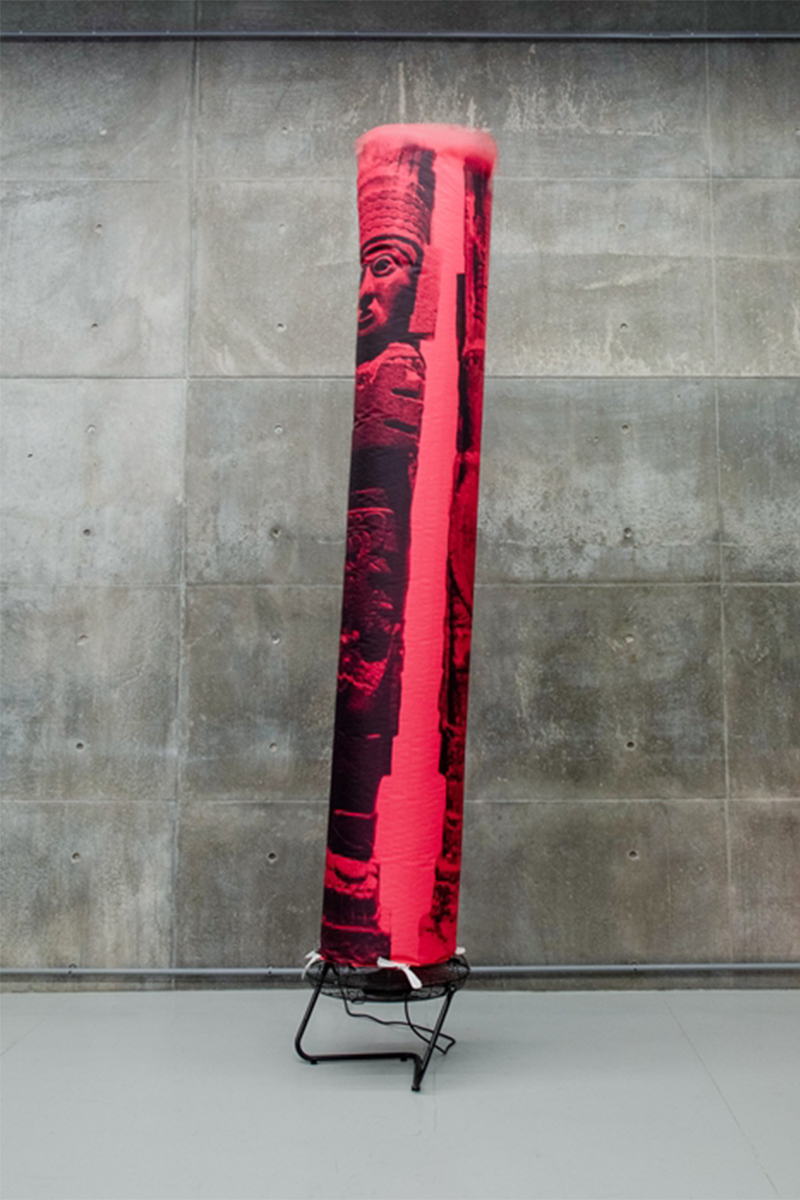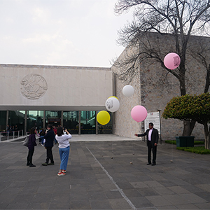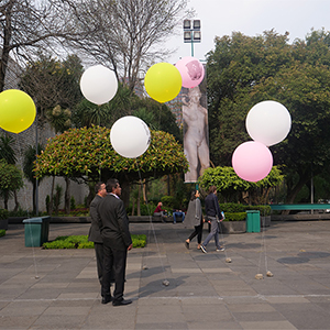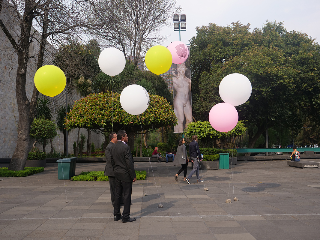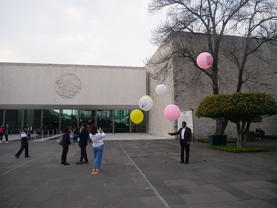 This new collection of objects based on plastic and air establishes a symbolic relationship with the material where said installation appeals to the physical instability of the pieces through the inflatable sculpture, which, reproducing the image of works of pre-Hispanic art on filled balloons of air, contrasts with the materiality of the authentic pieces, which are mostly made of stone, glass or clay.