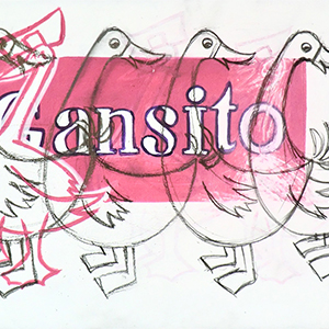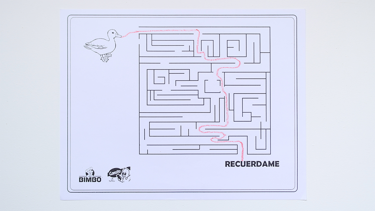 Based on a genealogical study of the Mexican pastry corporation, Marinela, Cuentos de papa ganso (Tales of Father Goose) is a wide-ranging series that brings together drawings and allegorical installations dedicated to Gansito Marinela, a small cake whose commercial boom exploded during the eighties in Mexico City through a marketing campaign that impacted generations due to its characteristic slogan “Recuérdame” (Remember me).